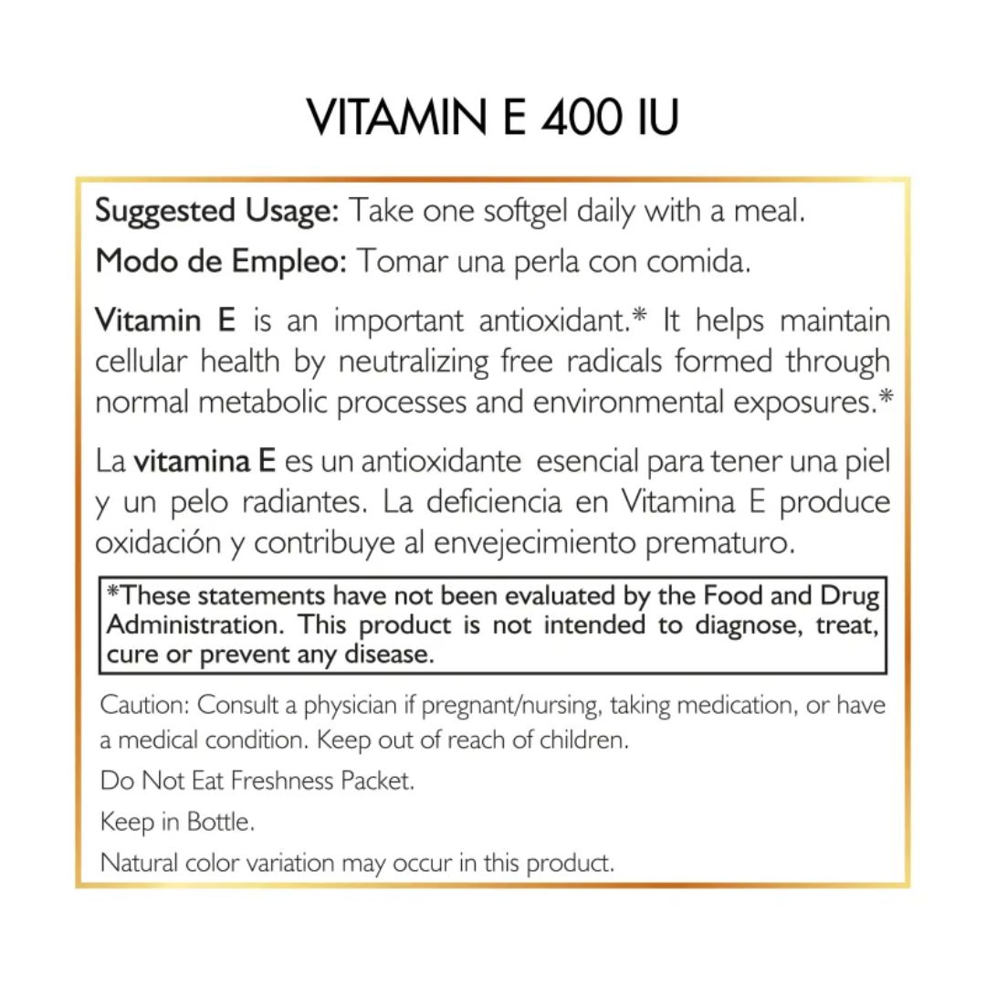 400 IU (268 MG) VITAMINA E POR SERVIRCIO –  1 SOFTGELS POR SERVICIO