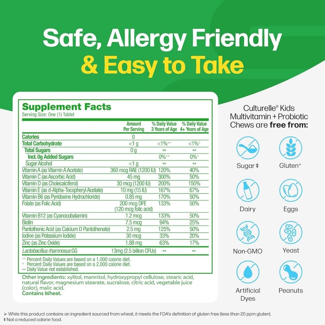La salud de su hijo es su primera prioridad, por lo que ayuda a apoyar su crecimiento y desarrollo saludables con 11 vitaminas y minerales esenciales, además de un probiótico eficaz. *††† Culturelle Kids Completa Multivitamina + Probiótico se fabrica exclusivamente con Lactobacillus rhamnosus GG, la cepa probiótica más estudiada clínicamente en niños.† No sólo Culturelle Kids es la marca probiótica recomendada para pediatras, sino que también es la marca número 1 dada por pediatras a sus propios hijos†††††††††††.