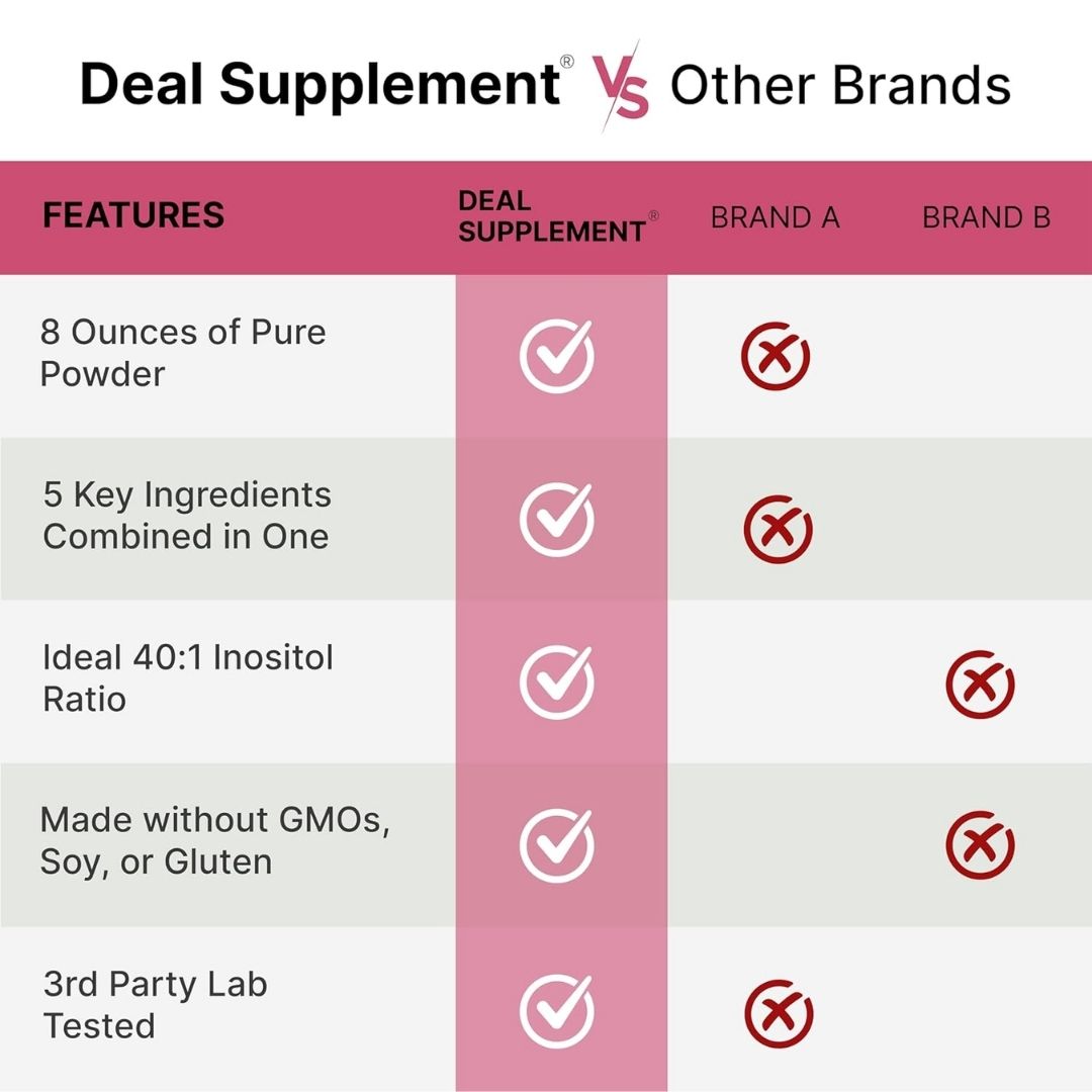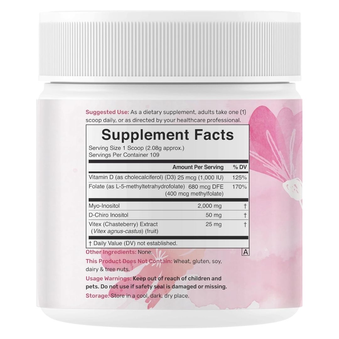 Deal Suplement. Myo y D-Chiro Inositol 2050 mg + Vitex + Vitamina D 3 + Ácido Fólico – 109 porciones en polvo sin sabor.