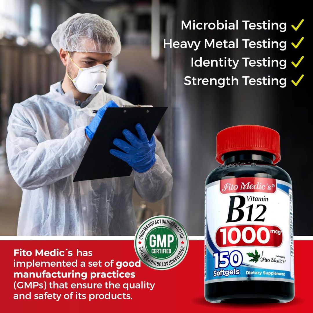 Fito Medics. Vitamina B12 1000 mcg (Cianocobalamina) – 150 softgels por frasco