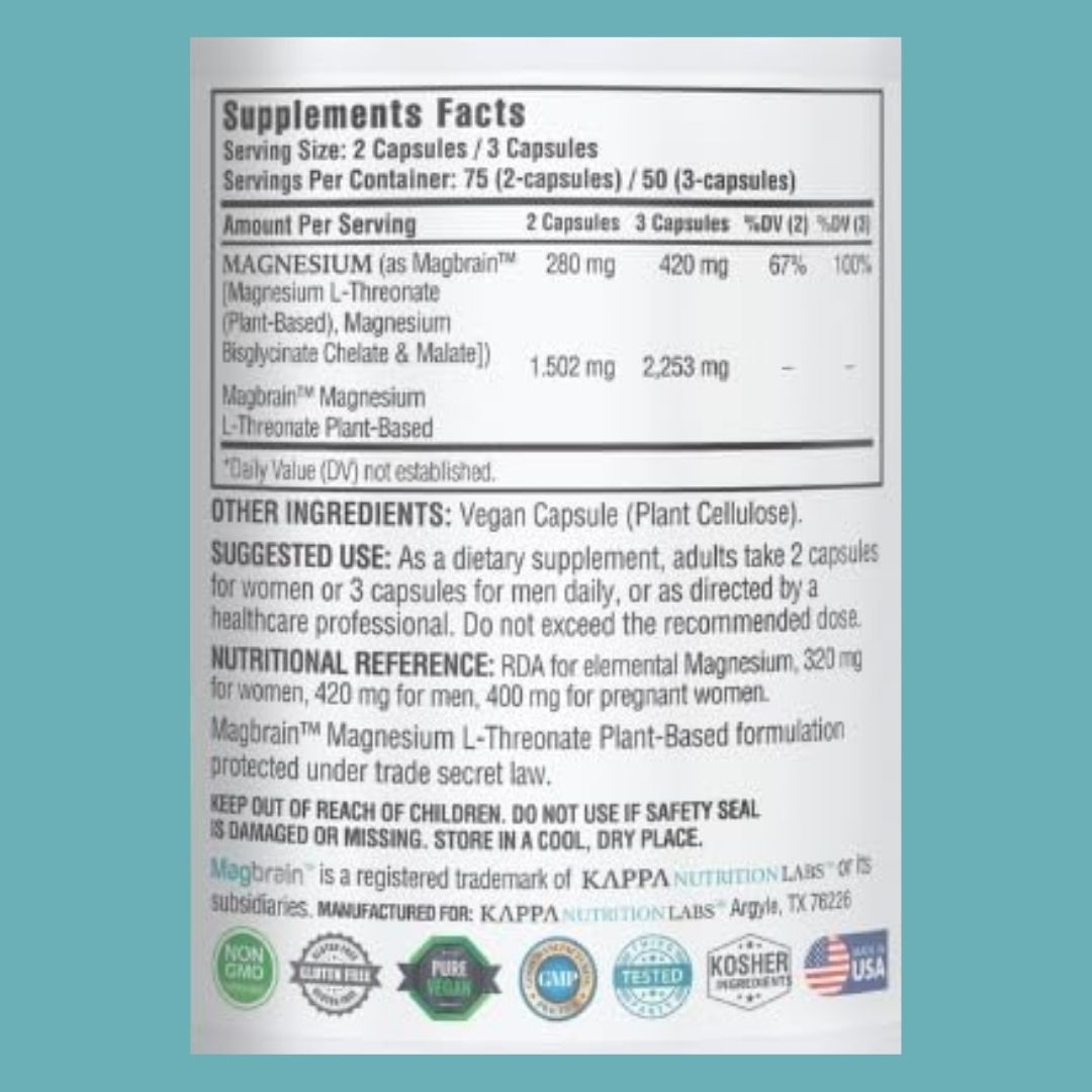 2,253 MG DE TREONATO DE MAGNESIO POR SERVICIO – 3 CÁPSULAS POR SERVICIO