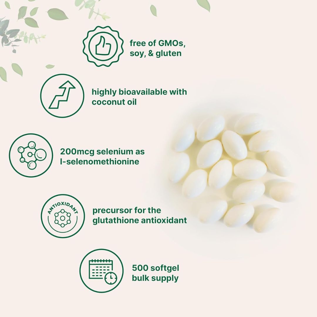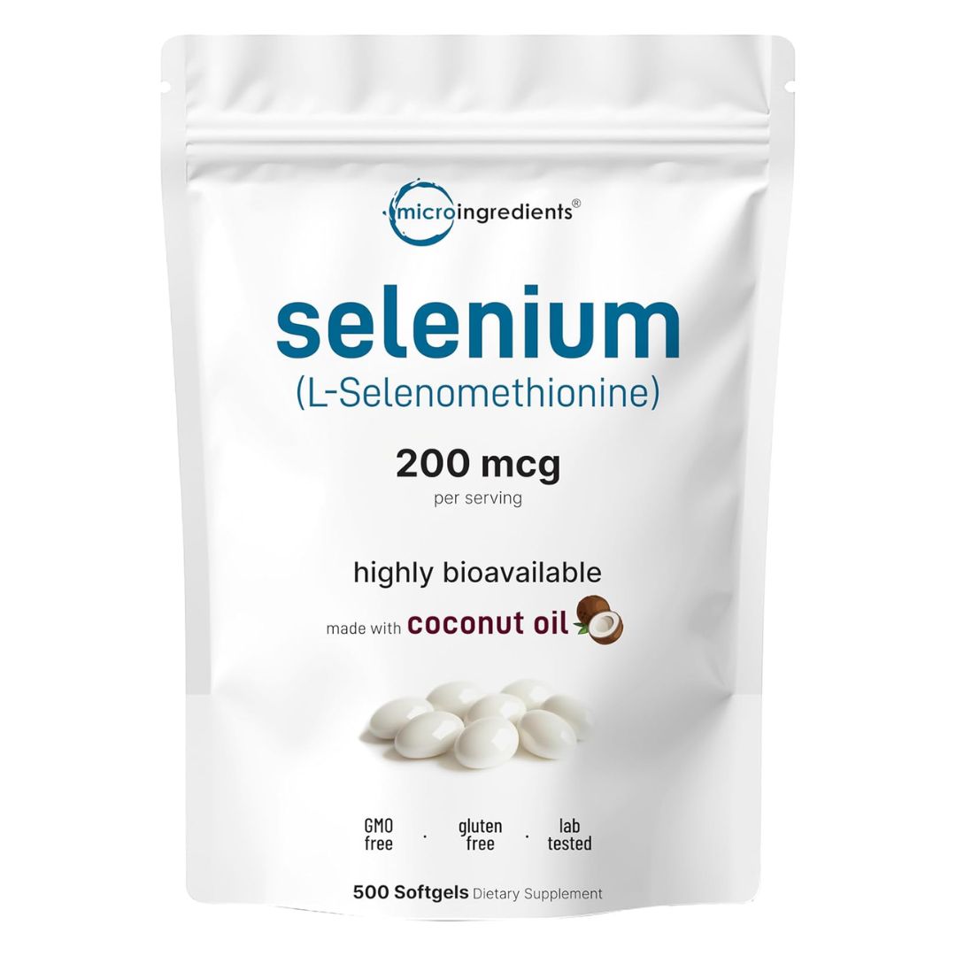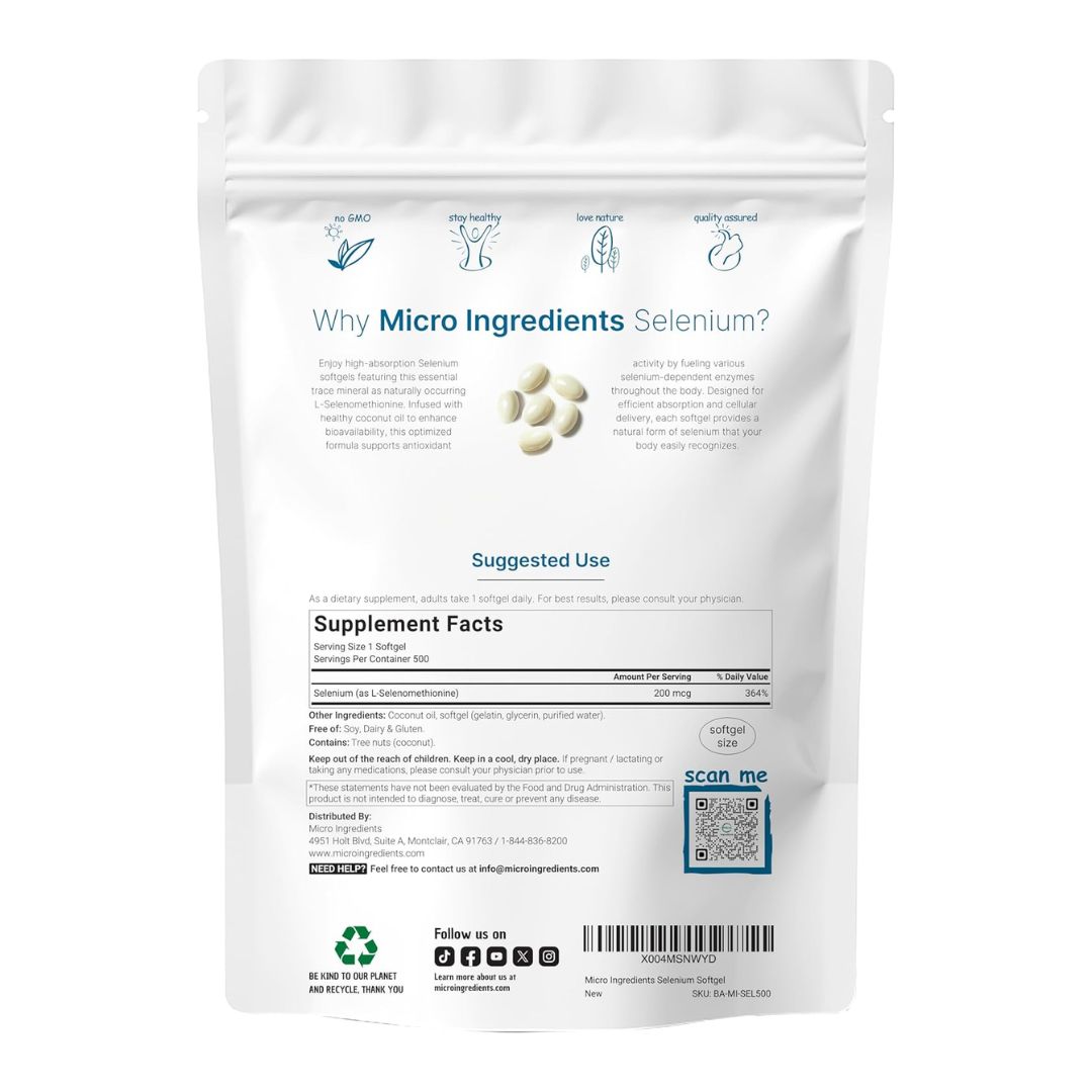 Micro Ingredients. Selenio 200 mcg – Selenometionine con Aceite de Coco – 500 softgels/ cápsulas blandas por paquete.