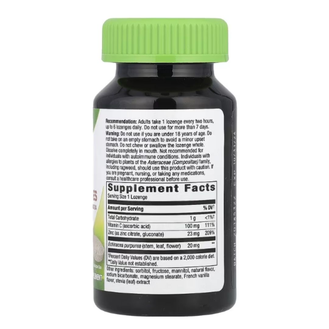 Natures Way. Zinc 23 mg + Vitamina C 100 mg. + Equinacea 20 mg – 60 lozenges – Caramelos Chupables.