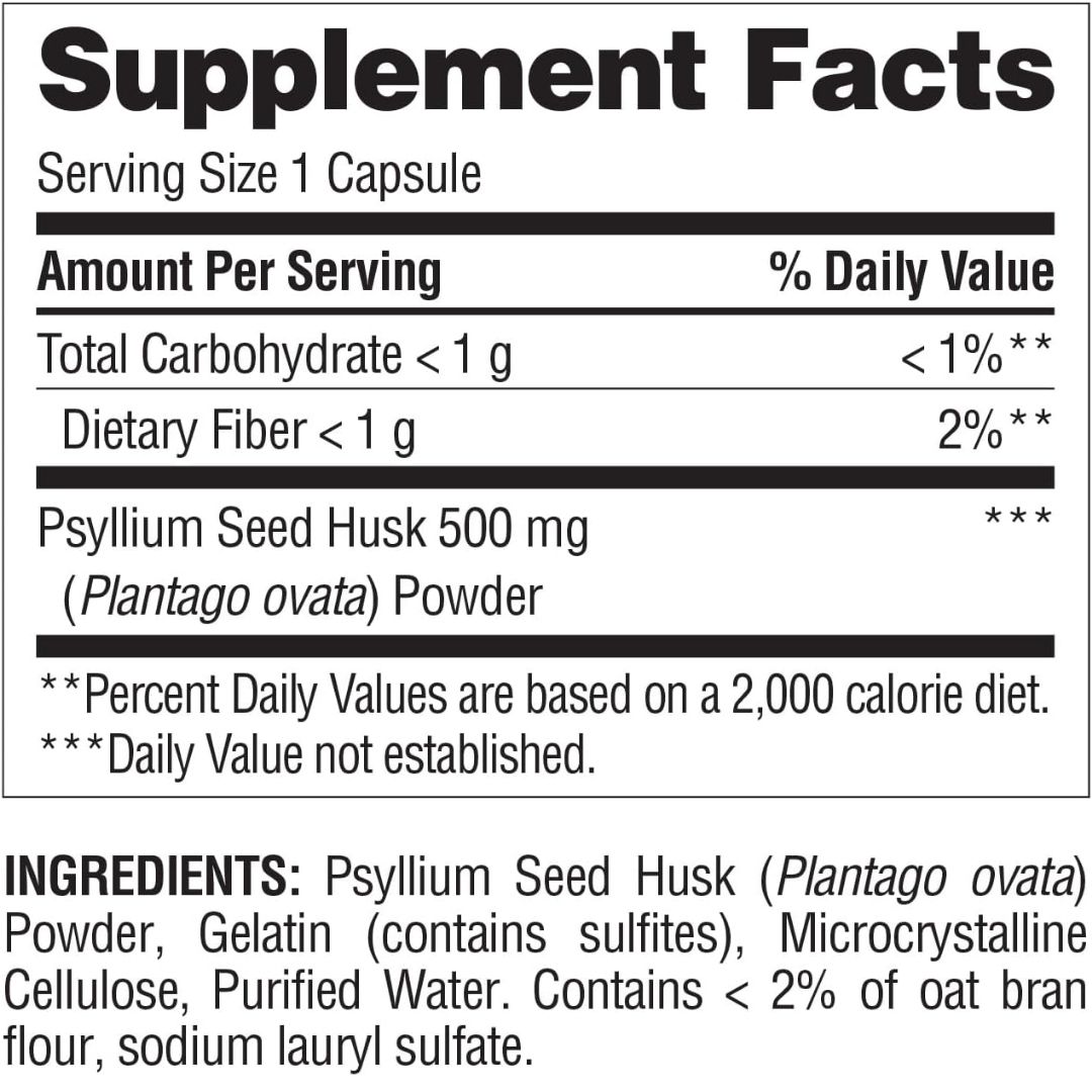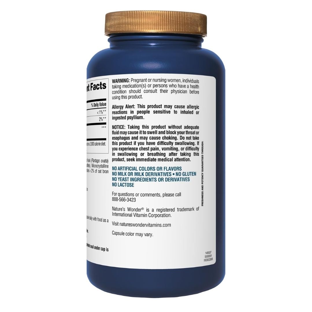 Natures Wonder. Psyllium Husk – 500 mg – 200 cápsulas por frasco.